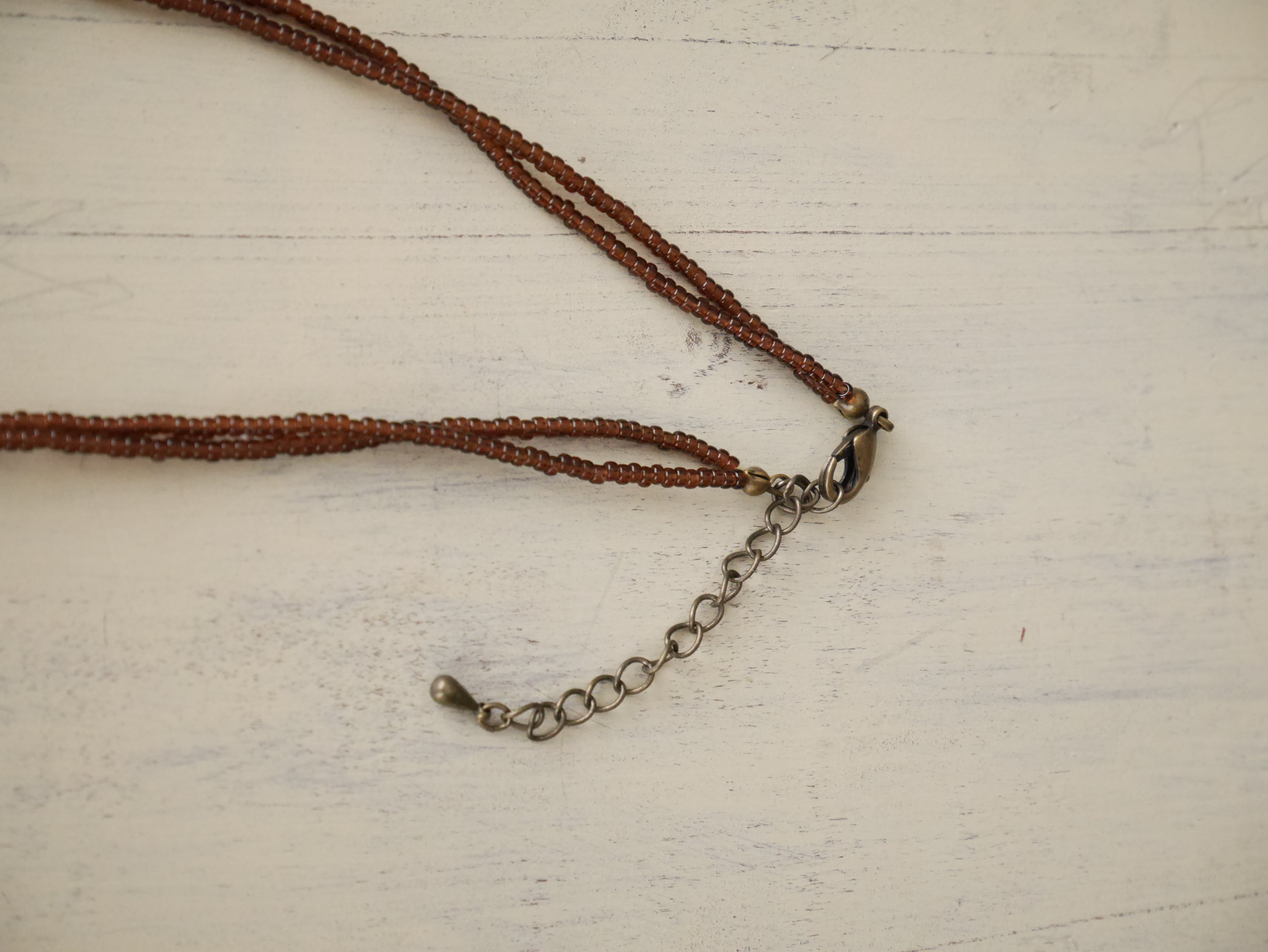 デニムや麻やコットンなどの、ラフでカジュアルなお洋服によく合うネックレスです。