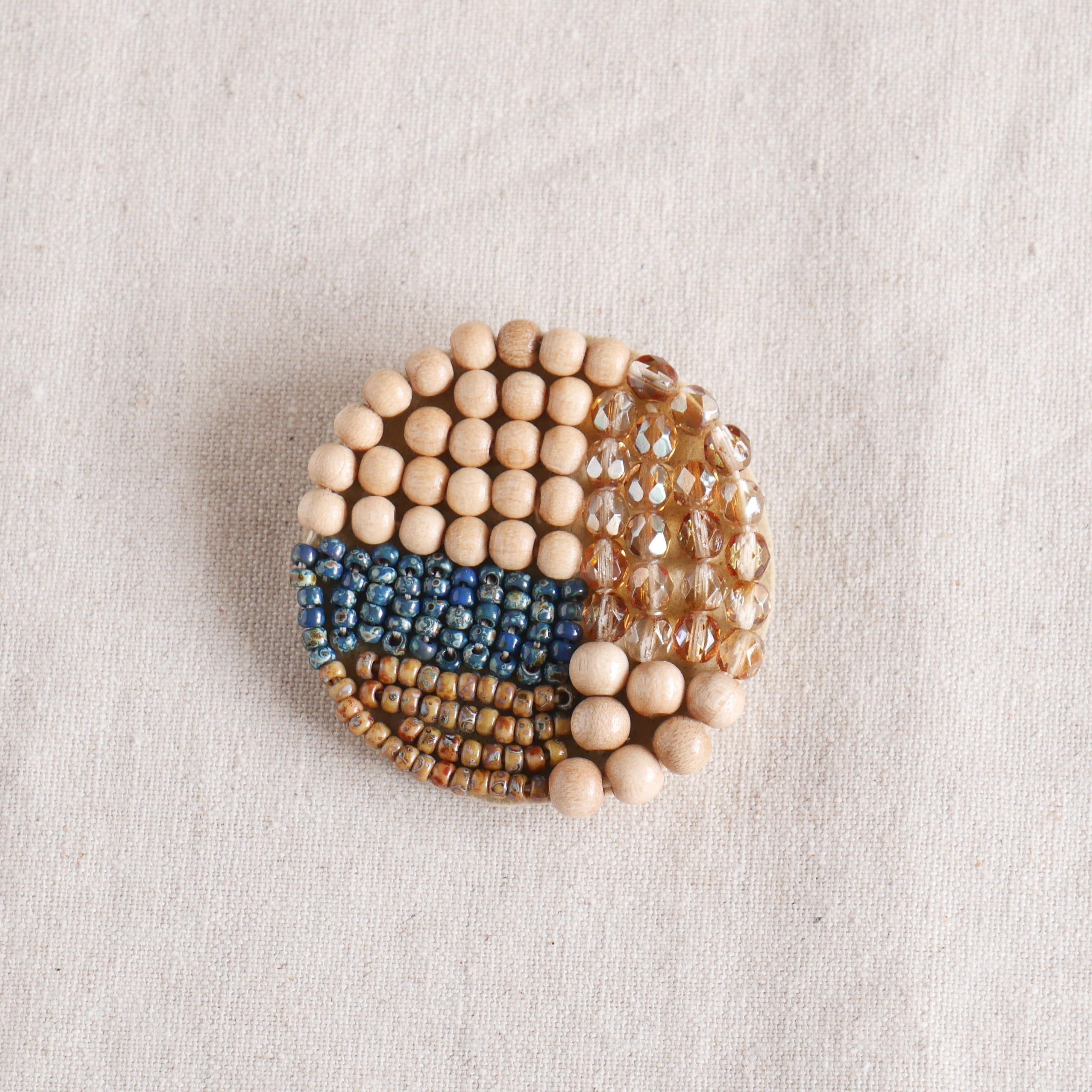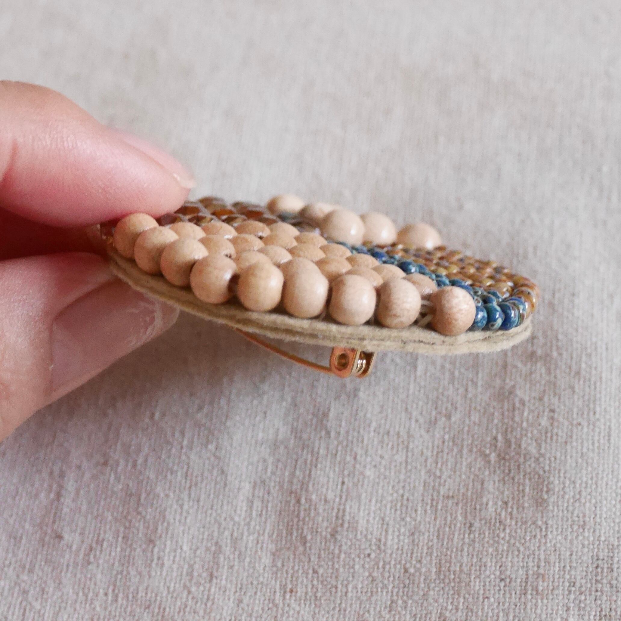 このブローチは、普段着に気軽に付けていただけるカジュアルテイストのビーズ刺繍で作るブローチです。