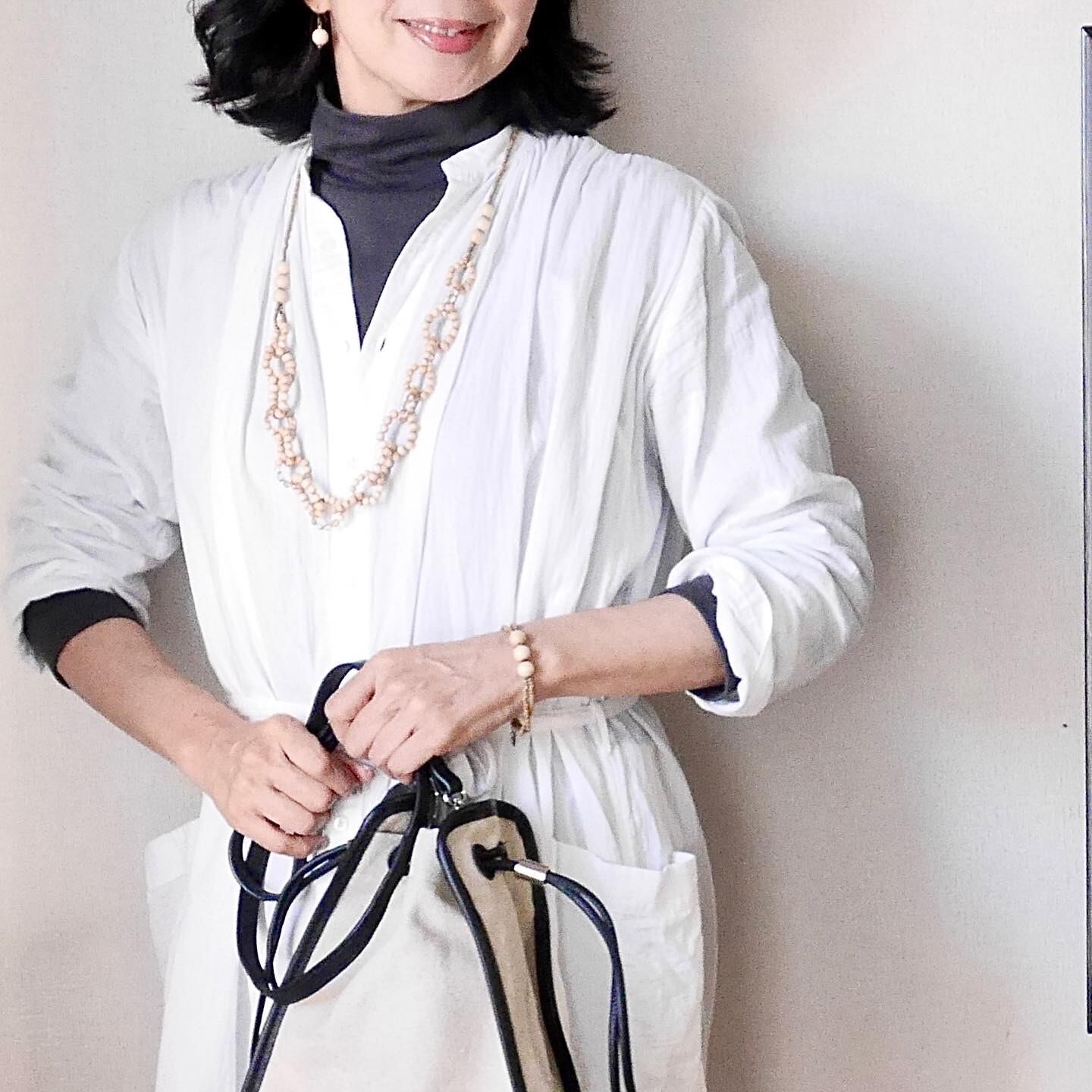 ミドル丈なので、重ね着にもゆとりをもってつけていただけるのでおすすめです。