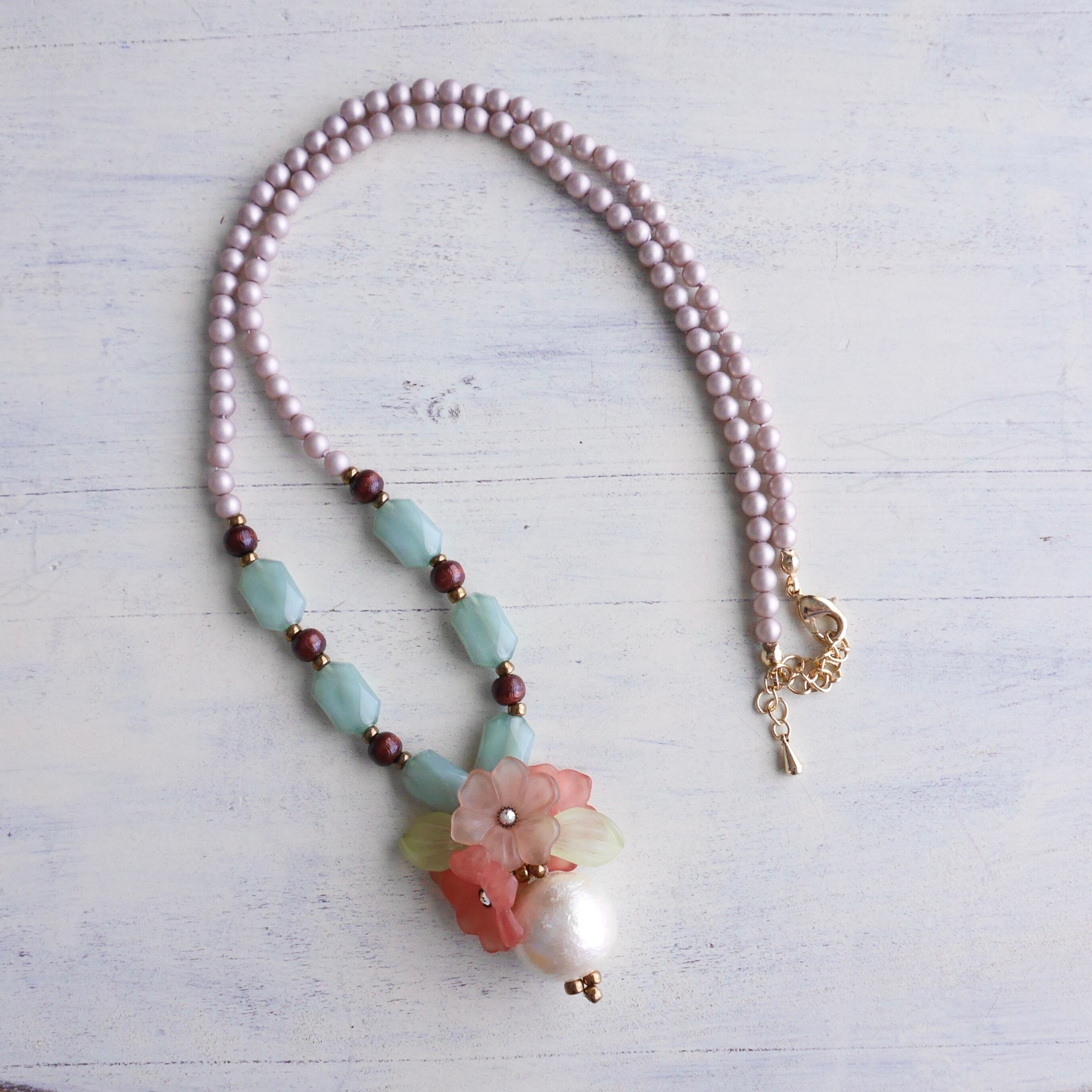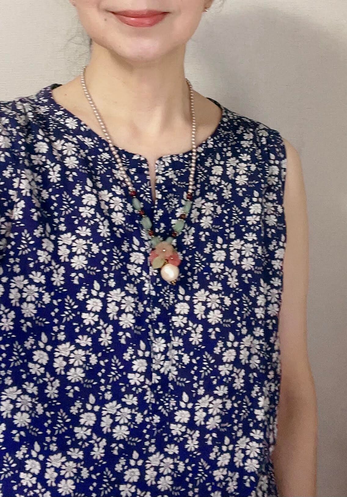 柔らかな春色のネックレス、ちょっとくすんだピンクは大人のやさしい雰囲気を醸し出してくれます。