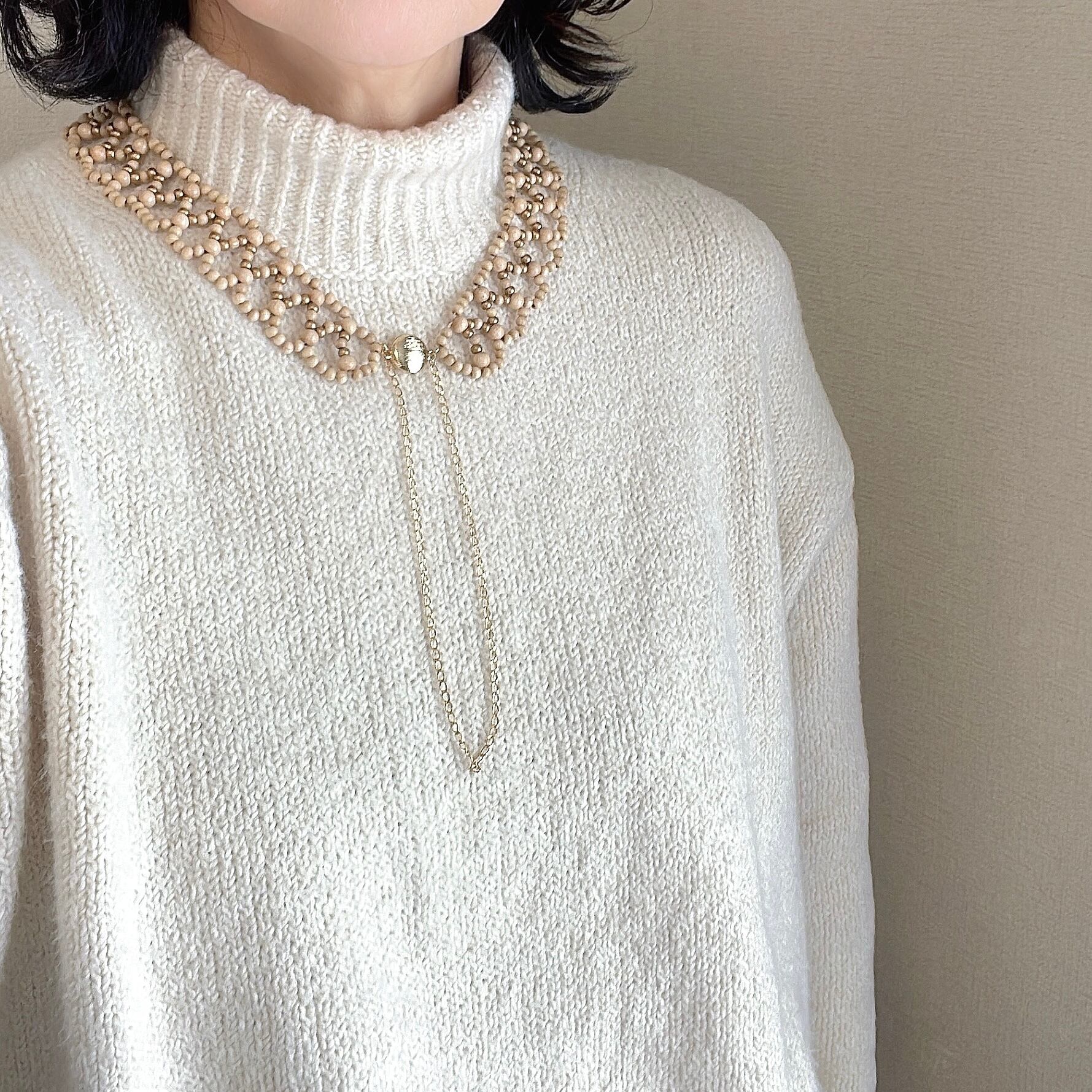 ウッドビーズで作るピエロ襟のような付け襟風ネックレスです。