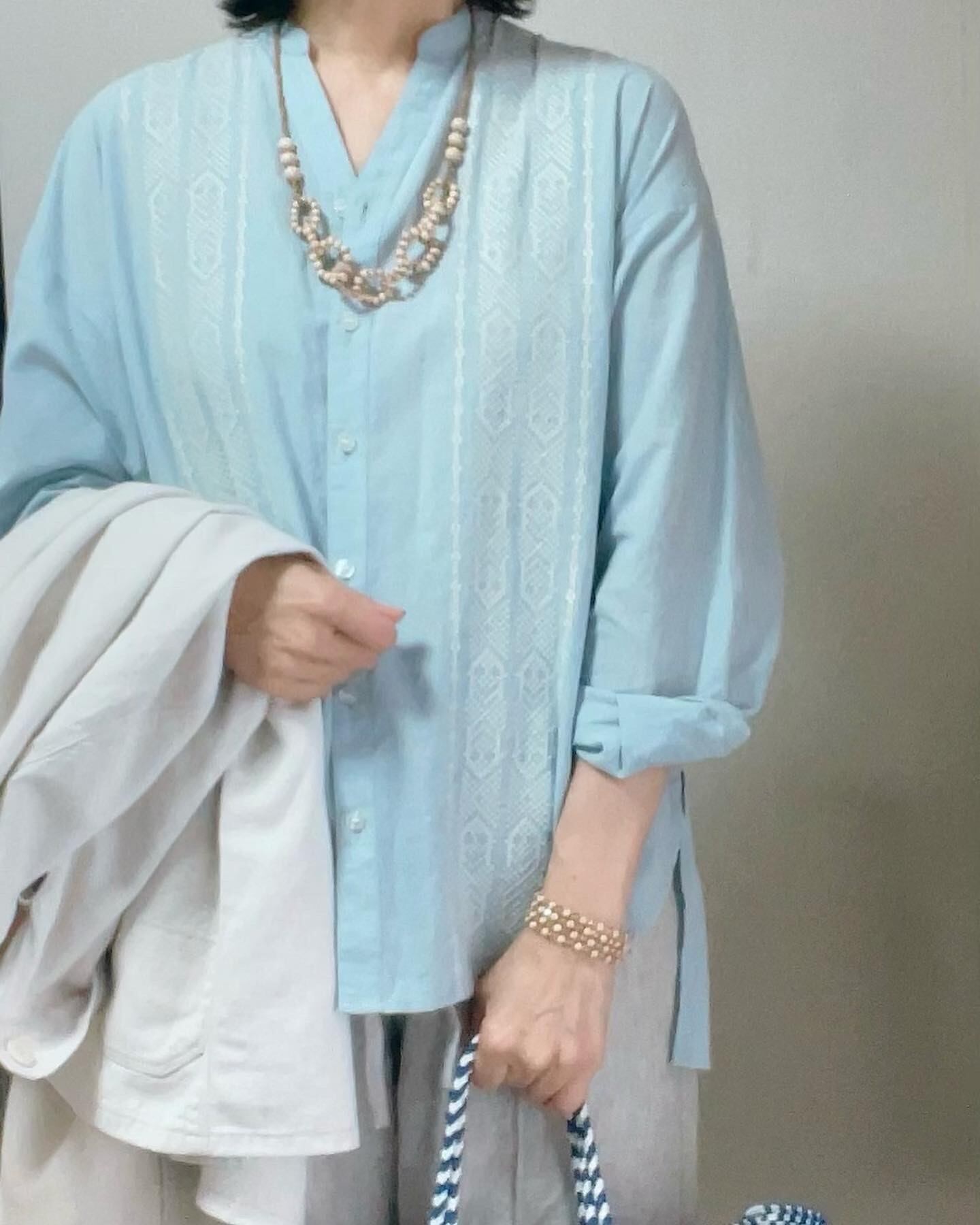 ミドル丈なので、重ね着にもゆとりをもってつけていただけるのでおすすめです。