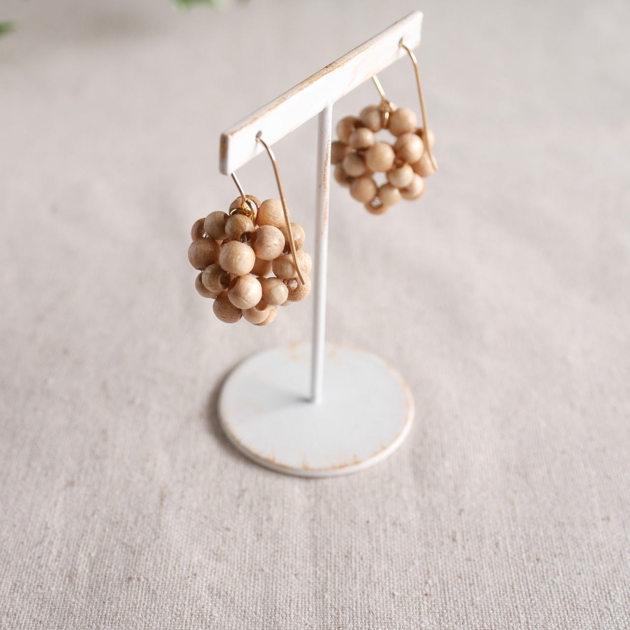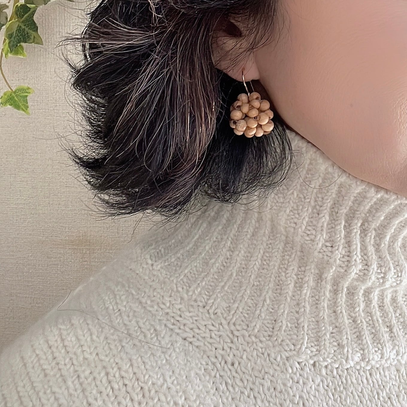 どちらの金具も、シンプルなウッドビーズボールが雰囲気のある大人のオシャレを演出してくれます。