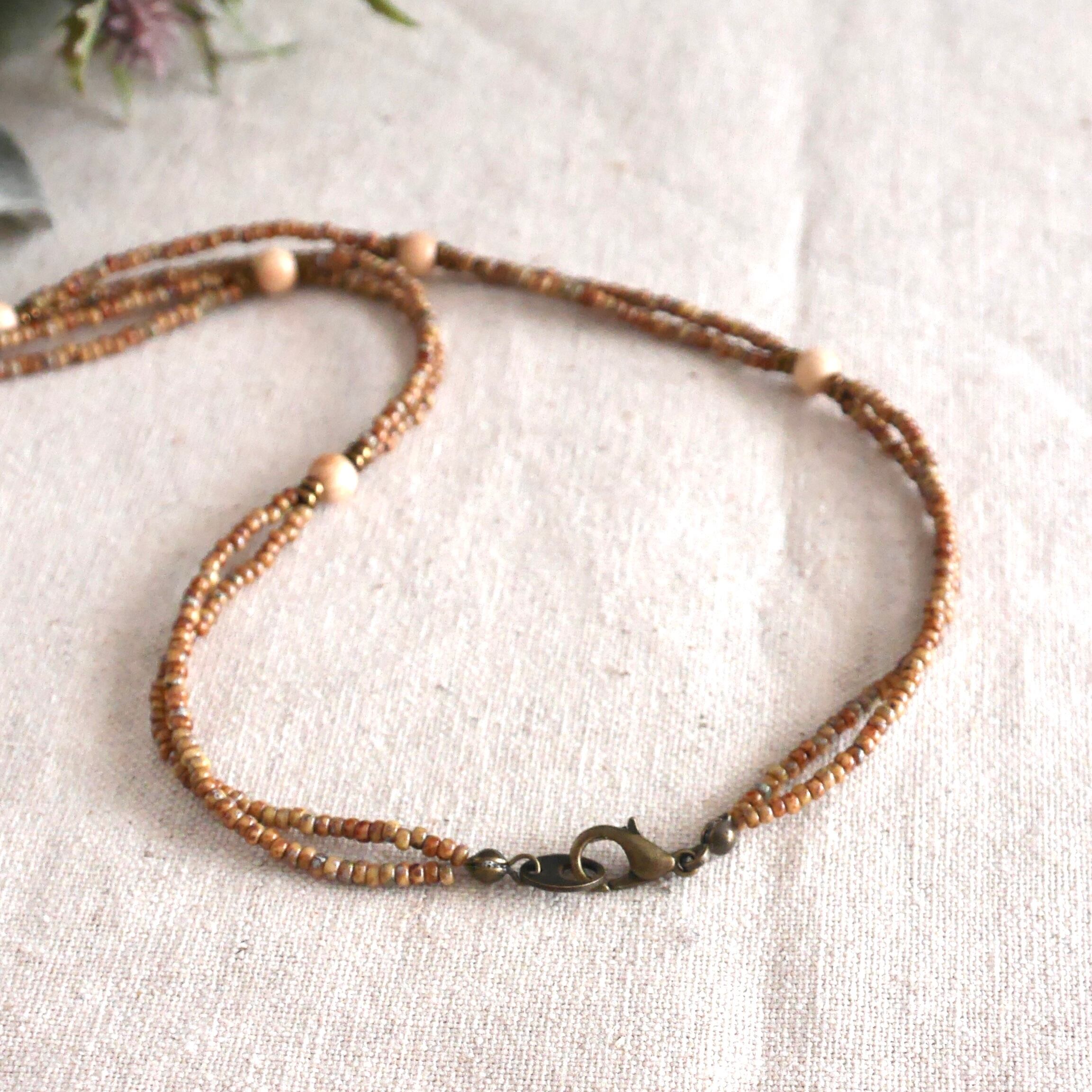 このネックレスは、白木のウッドビーズを使ったナチュラル感満点の夏にぴったりのビーズアクセサリーです。