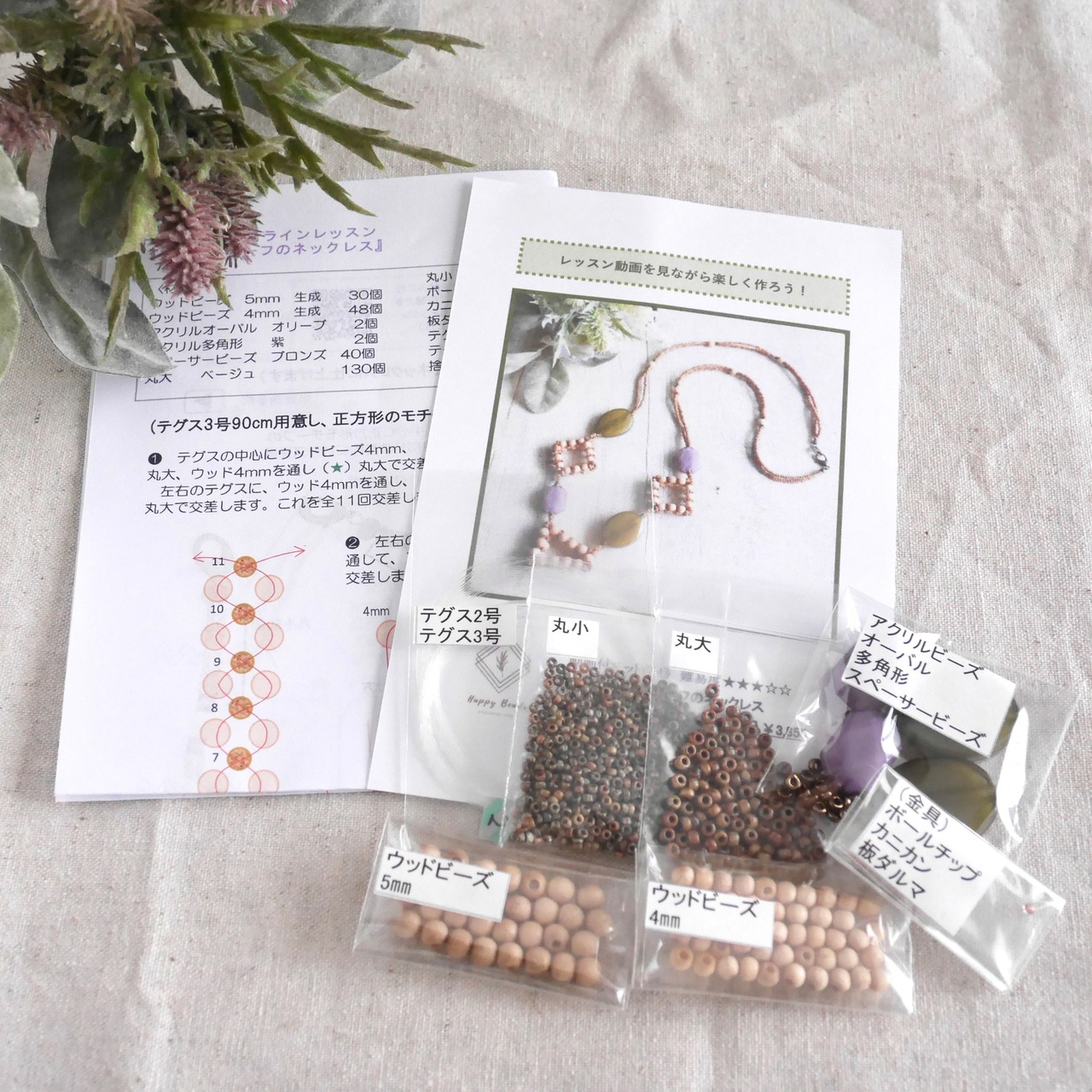 ●テグス編み初心者向けの手作りアクセサリーキット。(難易度★★☆☆☆)